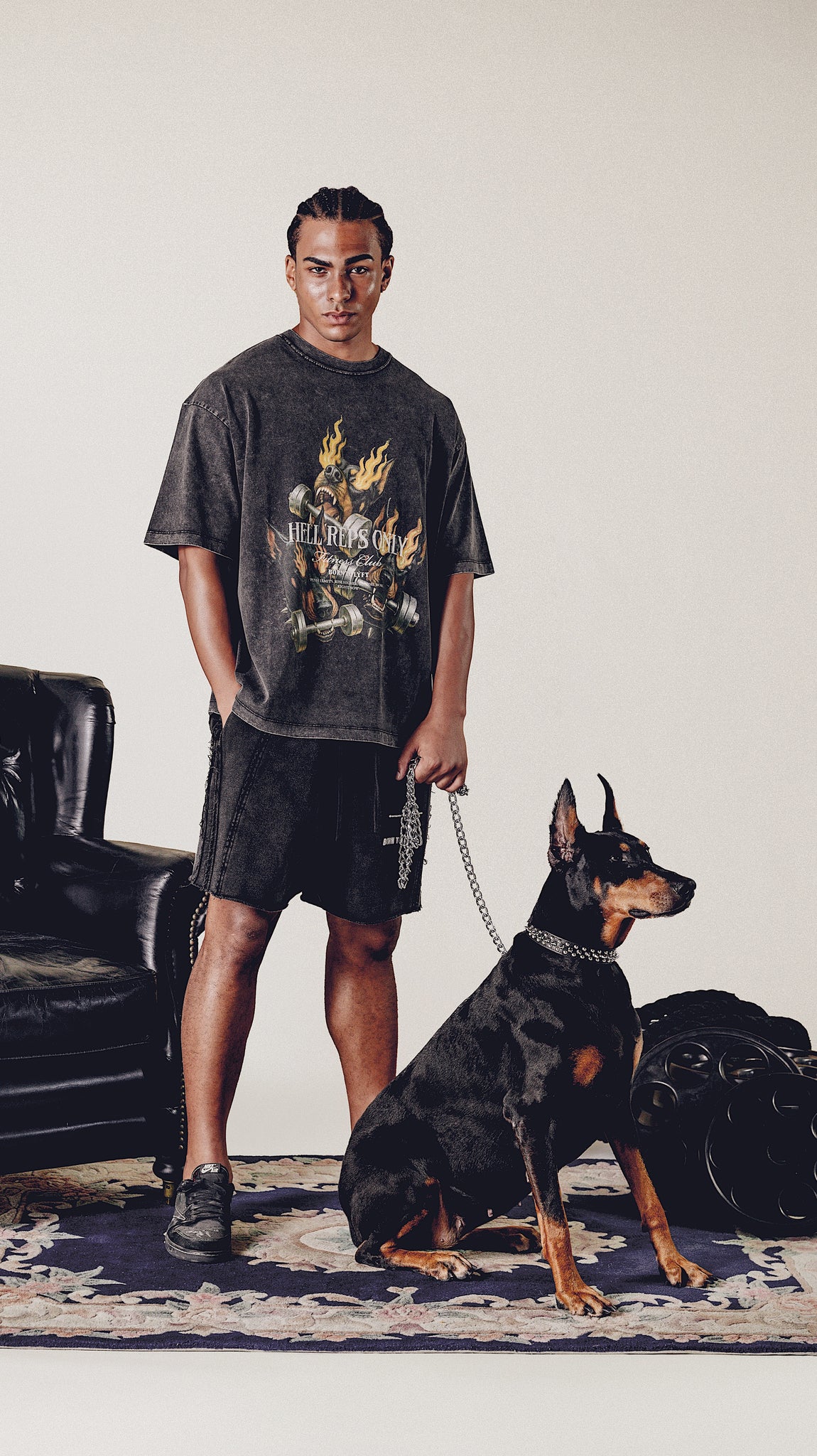 前面にオリジナルワッペン、背面にオリジナルデザインをプリントしたスウェットショーツ。ボディ全体にヴィンテージ加工を施すことで、トレンド感のあるアイテムに仕上がりました。トレーニングシーンのみならず、タウンユースでもご利用いただける一着となっております。ー ¥14,300(税込)ー ヴィンテージ加工ー ヘビーウェイトー コットン100%ー Model is wearing size : 175cm (5ft 10in) " L size "