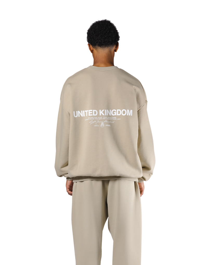 This crew neck sweatshirt has a simple design with the UNITED KINGDOM logo, one of LÝFT's background, printed on the back.